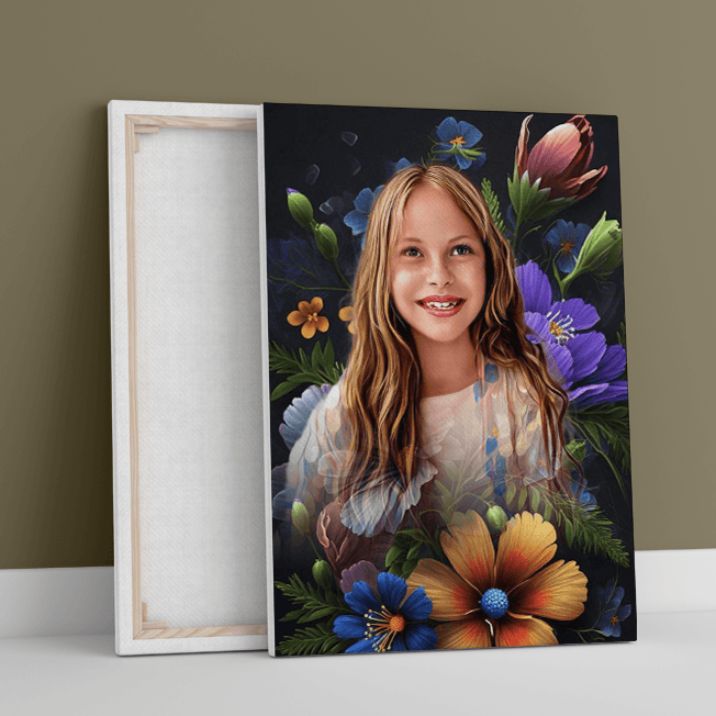 Das von Ihnen hochgeladene Foto wird in einem Stil bearbeitet, der ein realistisches Porträt mit floralem Hintergrund imitiert. Welche grafische Wirkung erzielt werden kann, zeigen die anschaulichen Fotos auf der Website.
