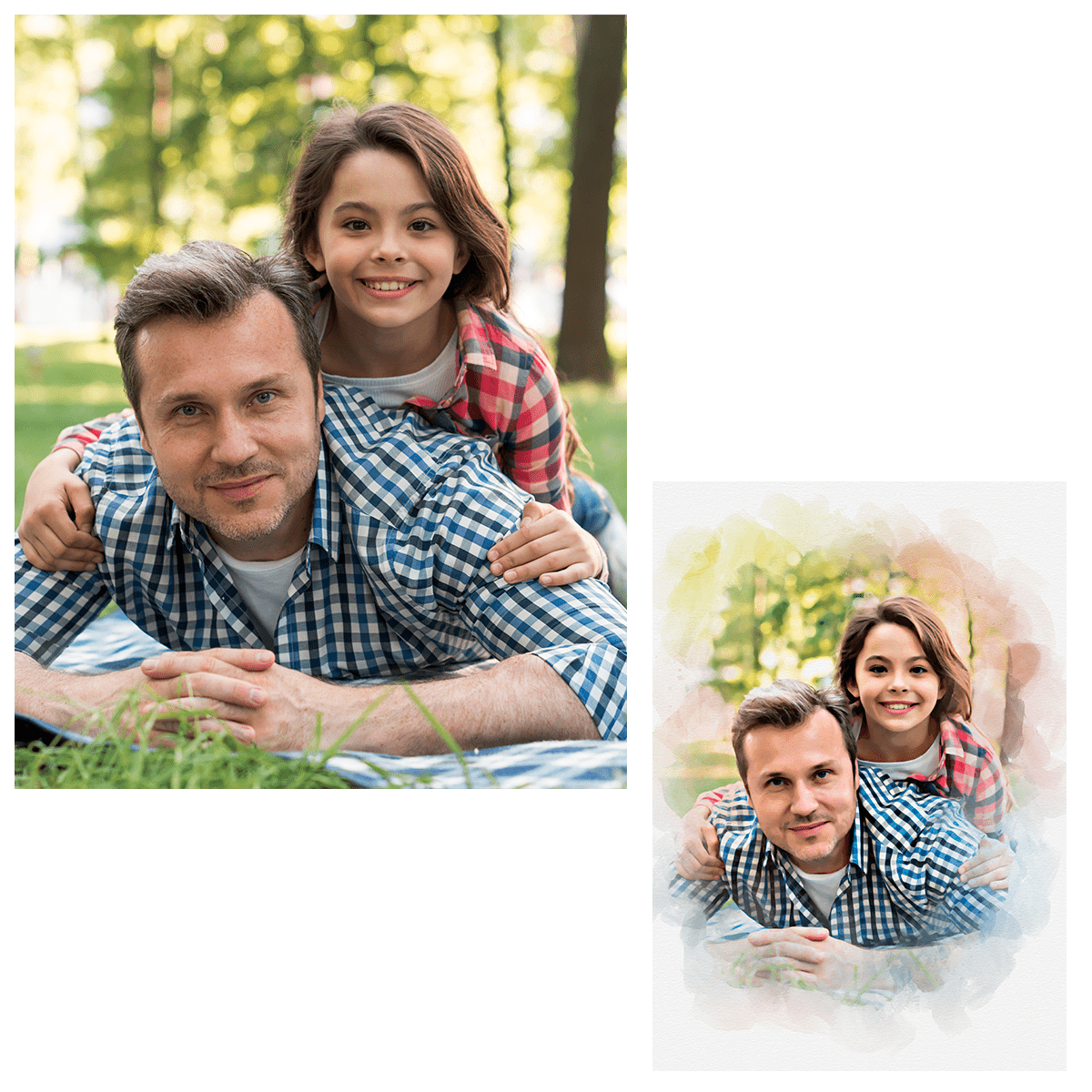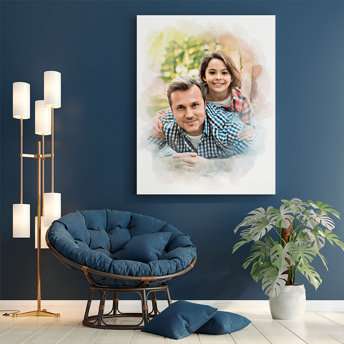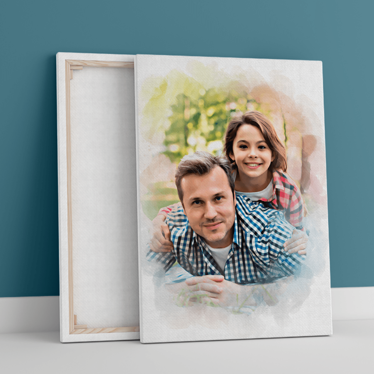 Porträt mit Papa im Aquarellstil - Druck auf Leinwand, personalisiertes Geschenk für Papa