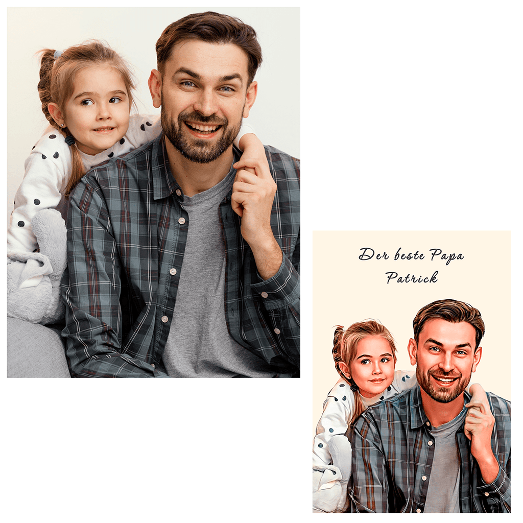 Das von Ihnen eingesandte Foto wird in ein Porträt im Filmstil verwandelt. Die Vorschaubilder auf der Website zeigen, welcher grafische Effekt erzielt werden kann. Alles, was Sie brauchen, ist ein Foto in guter Qualität von der Person, die Sie beschenken möchten.
