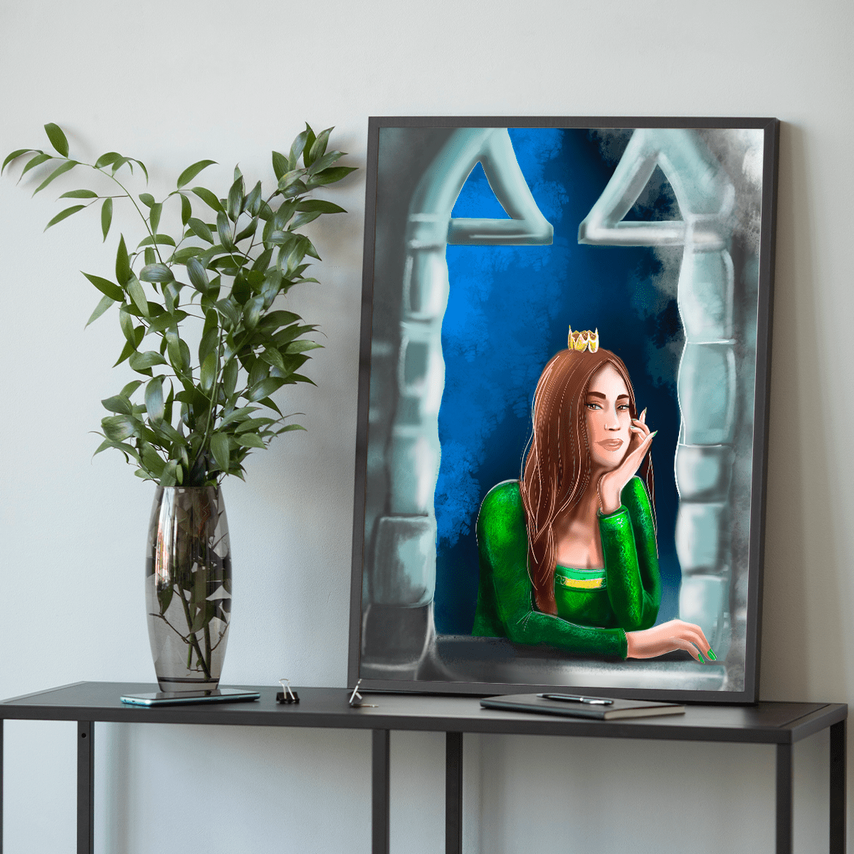 Prinzessin im Fenster - Poster, personalisiertes Geschenk für Frau