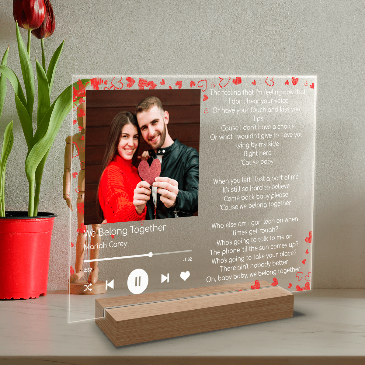 Romantischer Song - Druck auf Glas, personalisiertes Geschenk für Paar