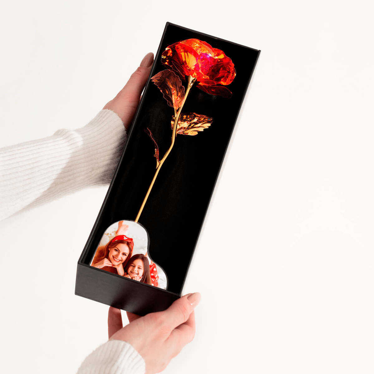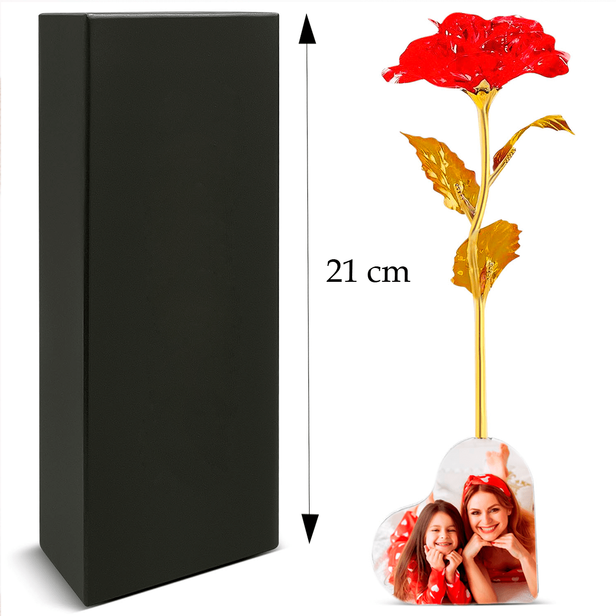 Zusammen mit der Rose erhalten Sie ein bedrucktes Glasherz. Sie können es mit einem Foto Ihrer Wahl personalisieren! Dann wird das Geschenk noch einmaliger!