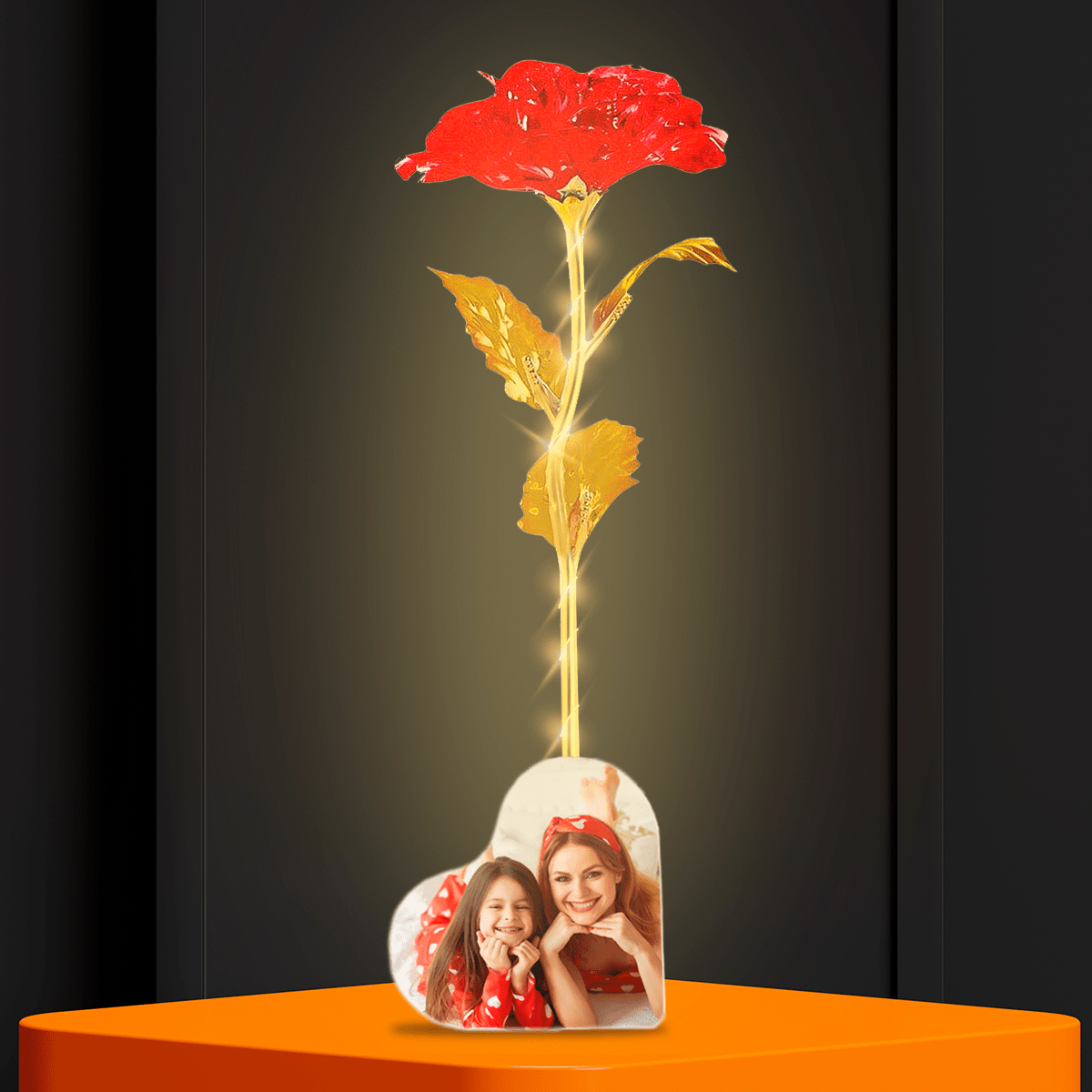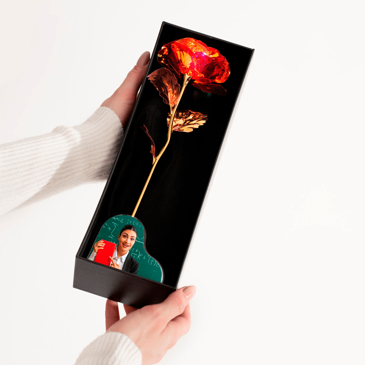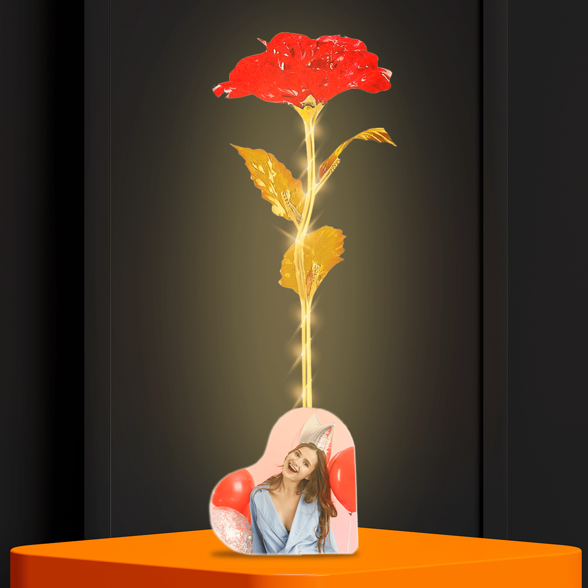 Zusammen mit der Rose erhalten Sie ein bedrucktes Glasherz. Sie können es mit einem Foto Ihrer Wahl personalisieren! Dann wird das Geschenk noch einmaliger!