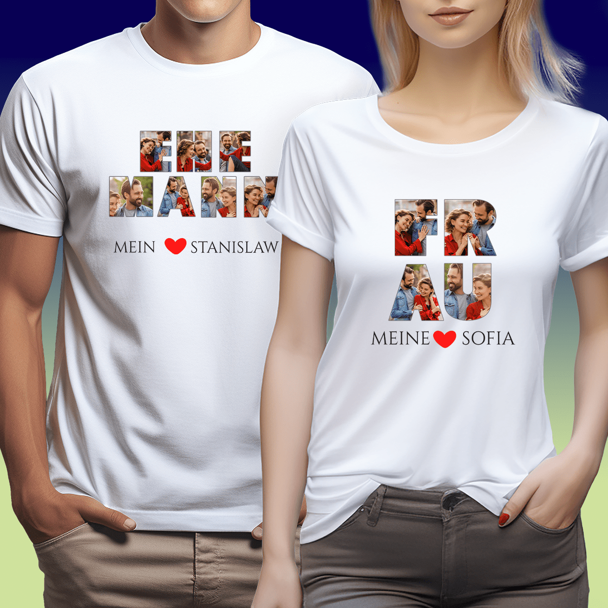 Schenken Sie Ihren Liebsten mehr als nur ein T-Shirt - schenken Sie ihnen ein originelles Geschenk, das sie an gemeinsame Momente und Gefühle erinnern wird. Ein personalisiertes T-Shirt ist ein Geschenk, das sagt: „Ich habe an dich gedacht und etwas Besonderes geschaffen“.