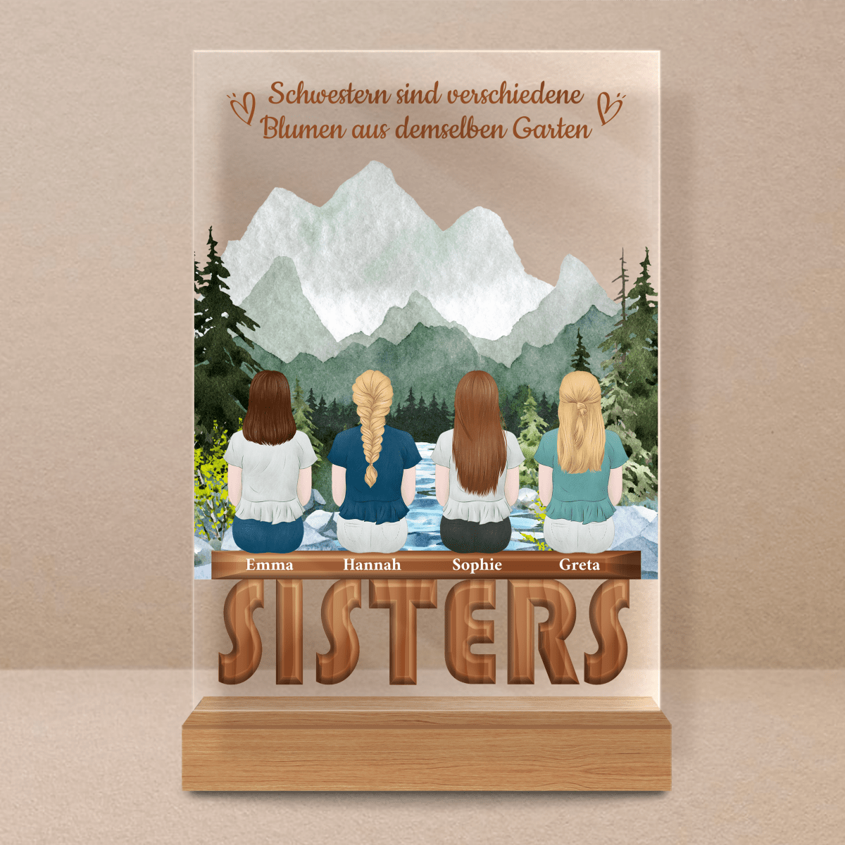Sisters Berge - Druck auf Glas, personalisiertes Geschenk für Schwester