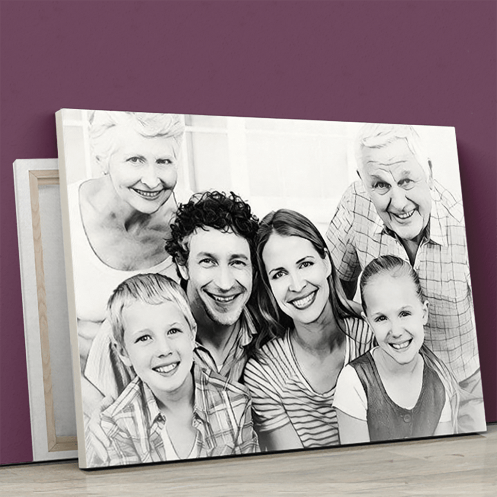 Das von Ihnen eingeschickte Foto wird in ein Porträt in Schwarz-Weiß ausgearbeitet. Die Vorschaubilder auf dieser Seite zeigen, welcher grafische Effekt erzielt werden kann.