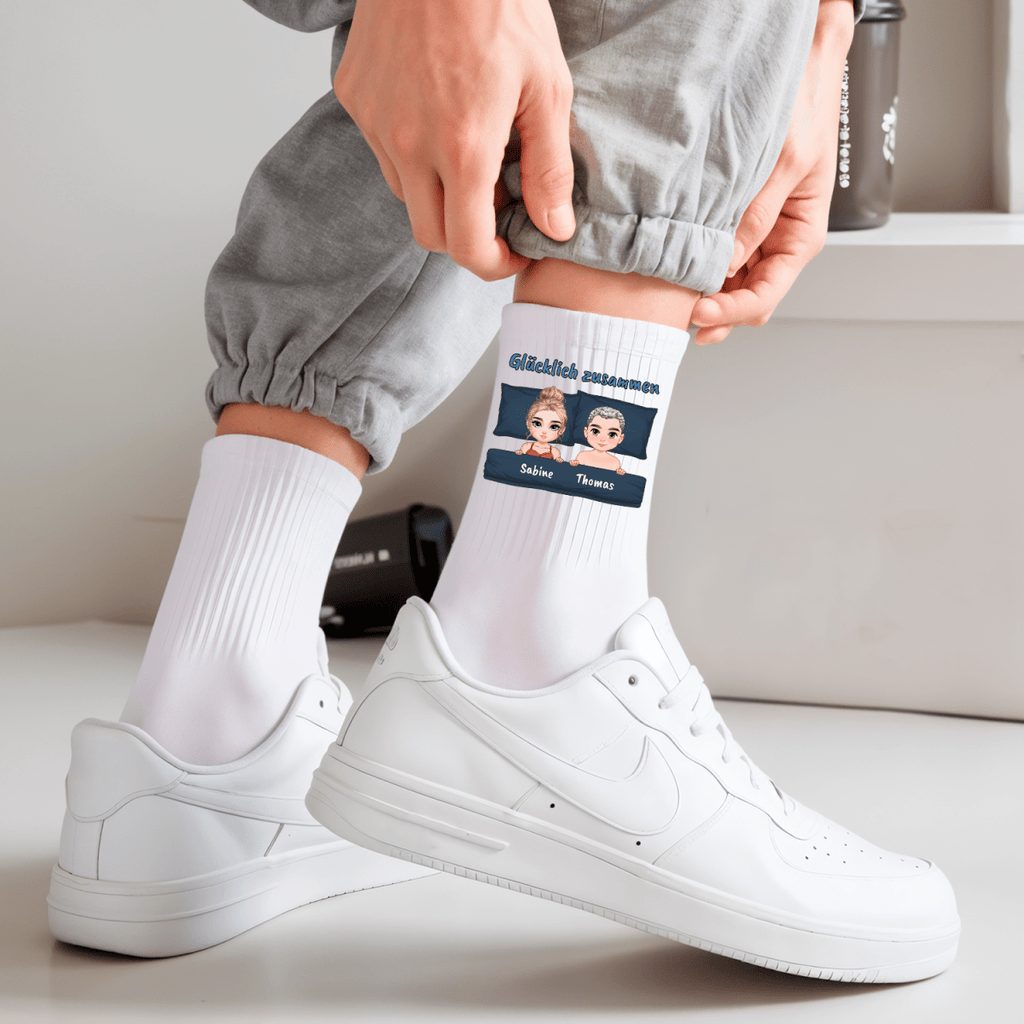 Socken mit Aufdruck GLÜCKLICH ZUSAMMEN - Personalisiertes Geschenk für Mann