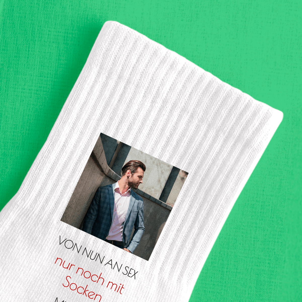 Die Socken mit Ihrem eigenen Aufdruck bestehen aus flexiblem, angenehmem Material, das für Komfort sorgt. Das moderne UV-Druckverfahren macht das Muster extrem langlebig und beständig gegen Abrieb und Ausbleichen. Durch die Möglichkeit der Personalisierung können Sie ein originelles Paar Socken entwerfen, das jedem Empfänger ein Lächeln ins Gesicht zaubert.