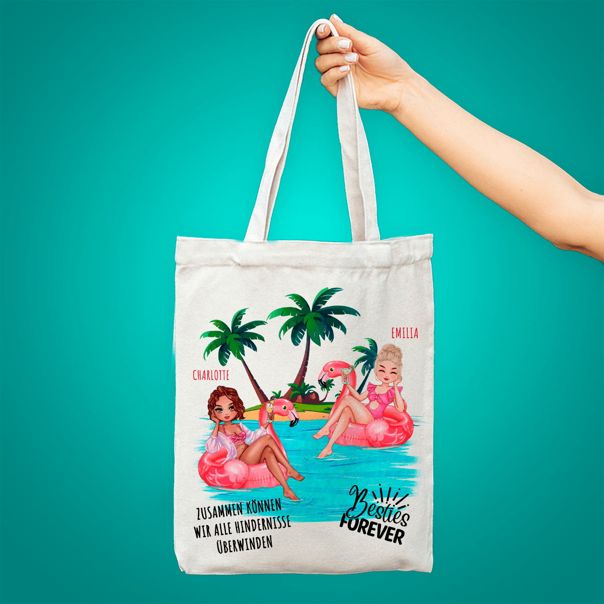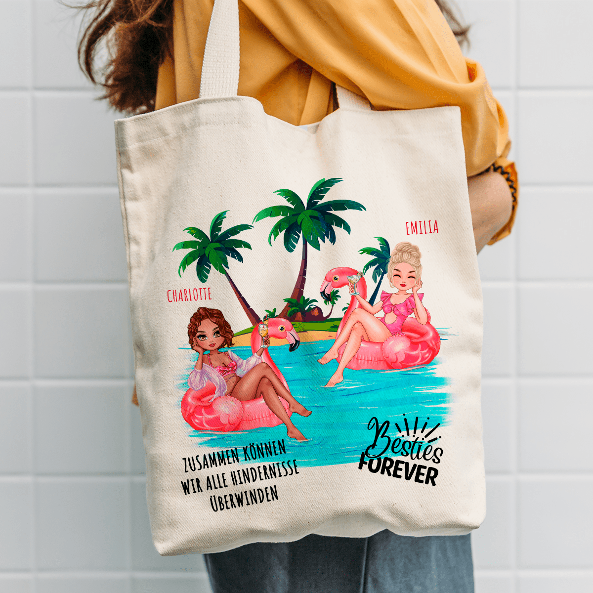 Stofftasche mit eigenem Aufdruck BESTIES FOREVER - personalisiertes Geschenk für Freundin