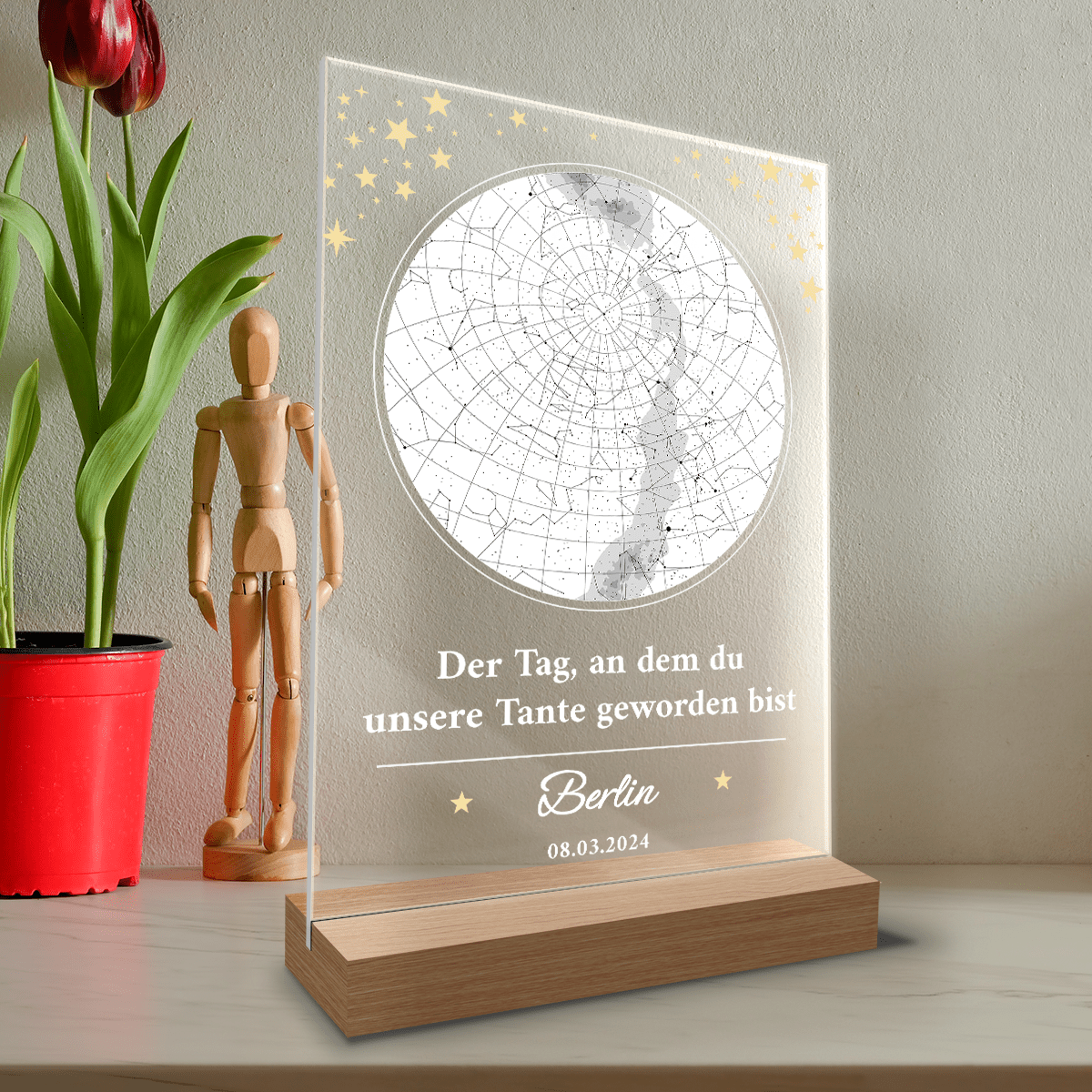 Tante Sternenkarte - Druck auf Glas, personalisiertes Geschenk für Tante