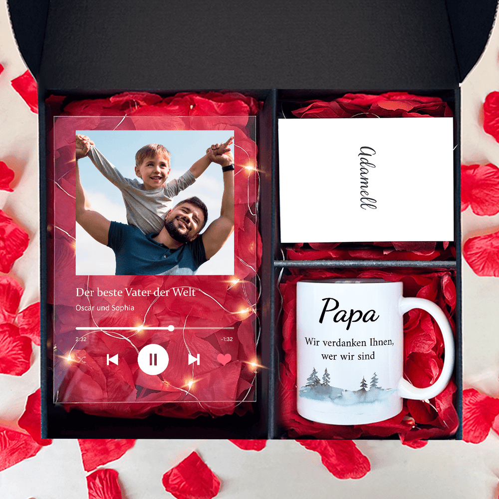 Tasse + Druck auf Glas PAPA - Geschenkset Box 2 in 1, personalisiertes Geschenk für Papa