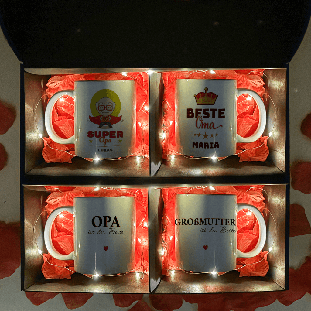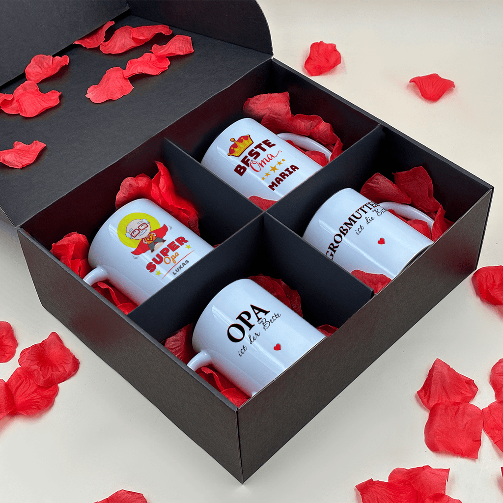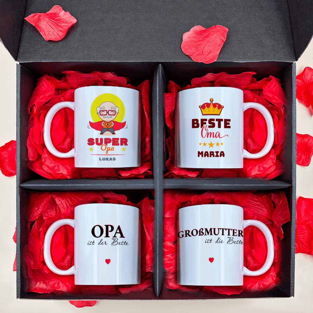 Tassen Set GROSSELTERN - 4 x bedruckte Tasse, personalisiertes Geschenk für Großeltern