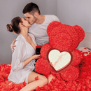 Der Teddy ist aus über 300 Schaumrosen 3D handgefertigt. Die Rosen bestehen aus einem weichen, angenehmen und hypoallergenen Material. Geht nicht kaputt und sieht viele Jahre lang schön aus. Die Blüten sind die gleiche mit den natürlichen und haben keine Angst vor starken Umarmungen.
