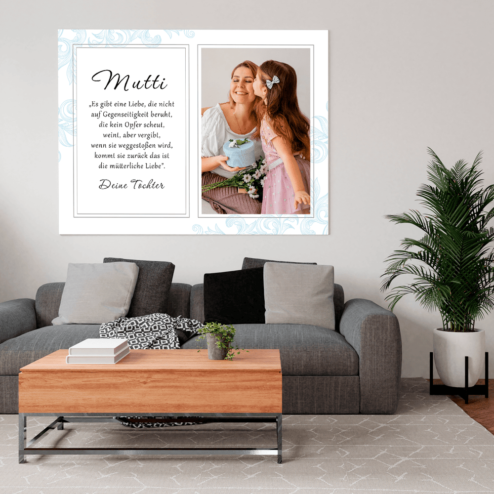 Text und Foto in Rahmen - Druck auf Leinwand, personalisiertes Geschenk für Mama