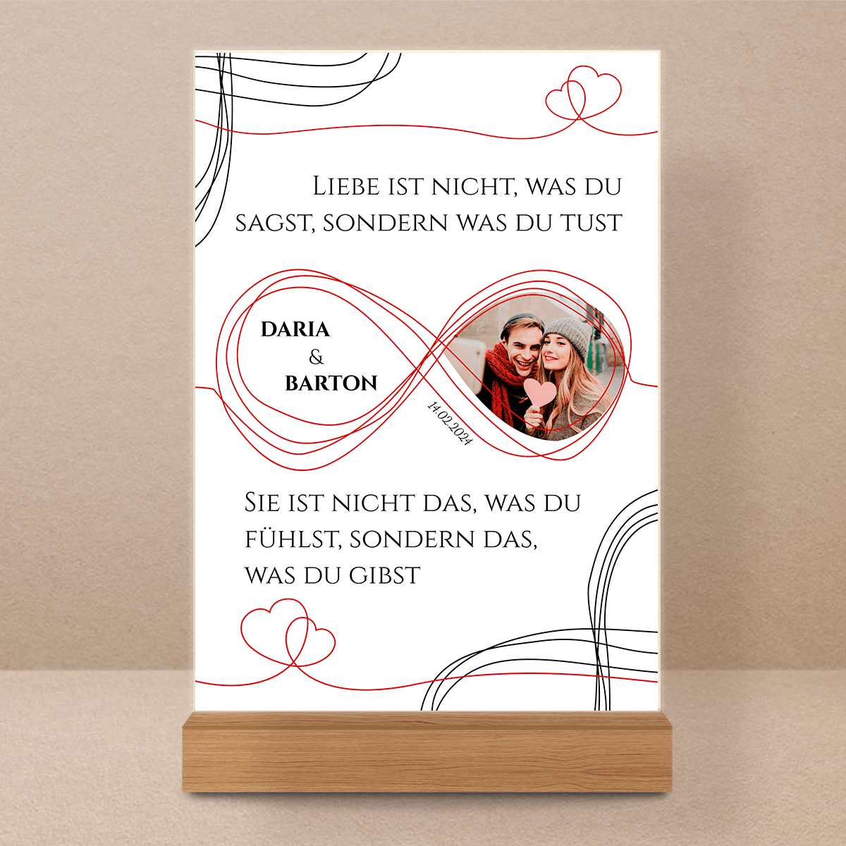 Unendliche Liebe - Druck auf Glas, personalisiertes Geschenk