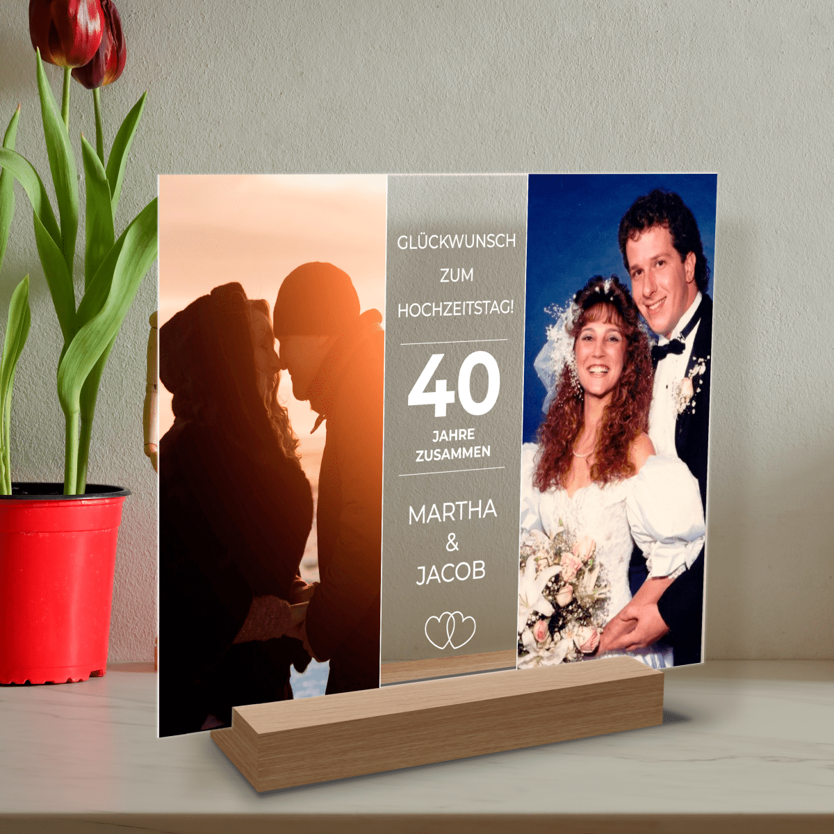Unser 40-jähriges Jubiläum - Druck auf Glas, personalisiertes Geschenk für Paar