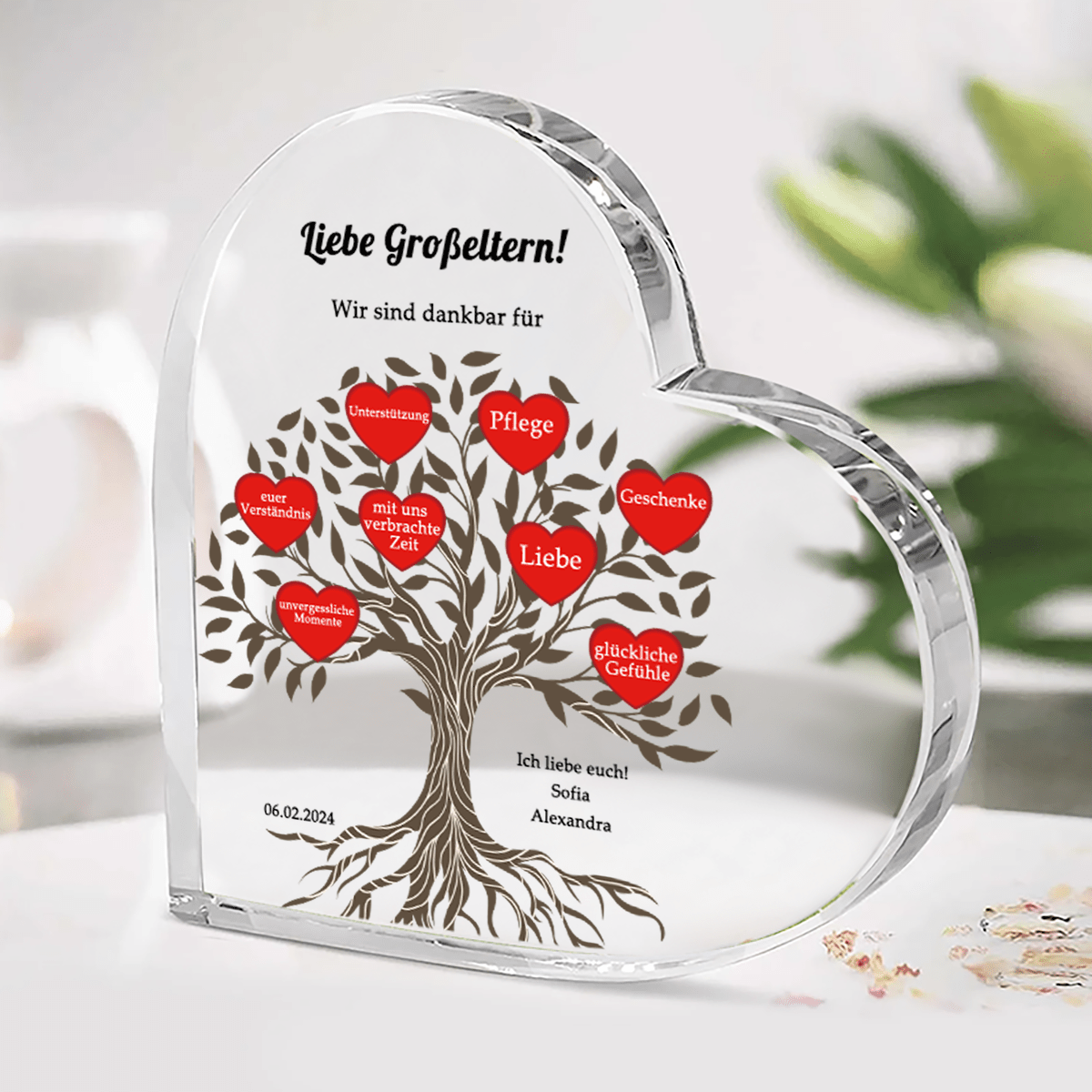 Herz aus Glas, personalisiertes Geschenk für sie, ihn, Oma, Opa, Geschenk zum Oma-Tag, Opa-Tag, Geburtstag, Namenstag, Urlaub, originelle Geschenkidee