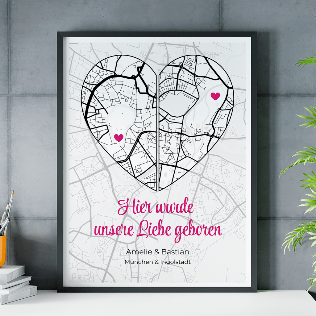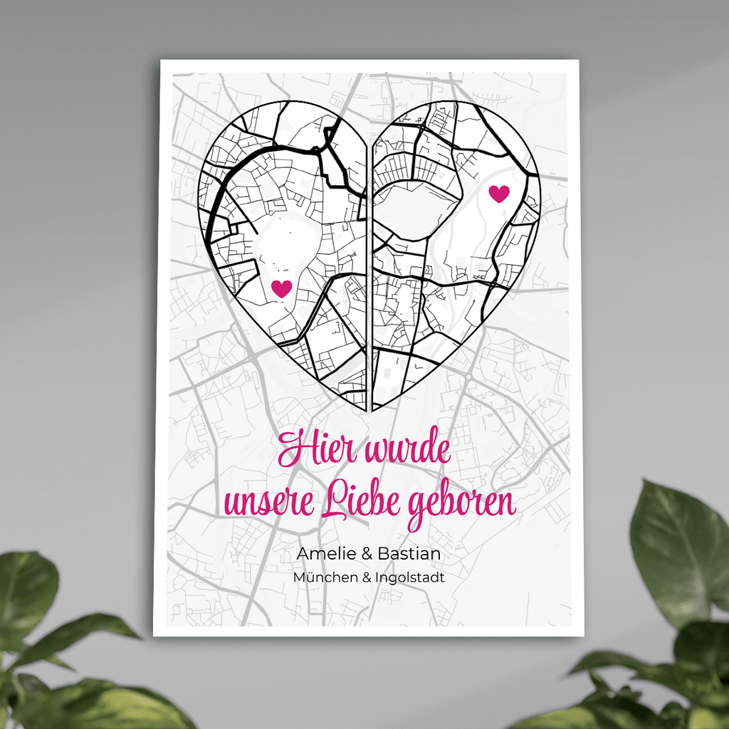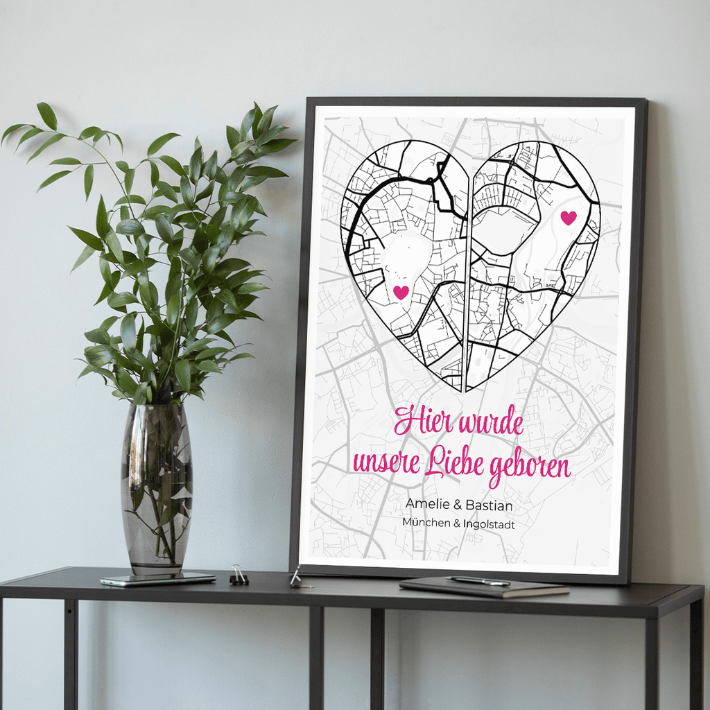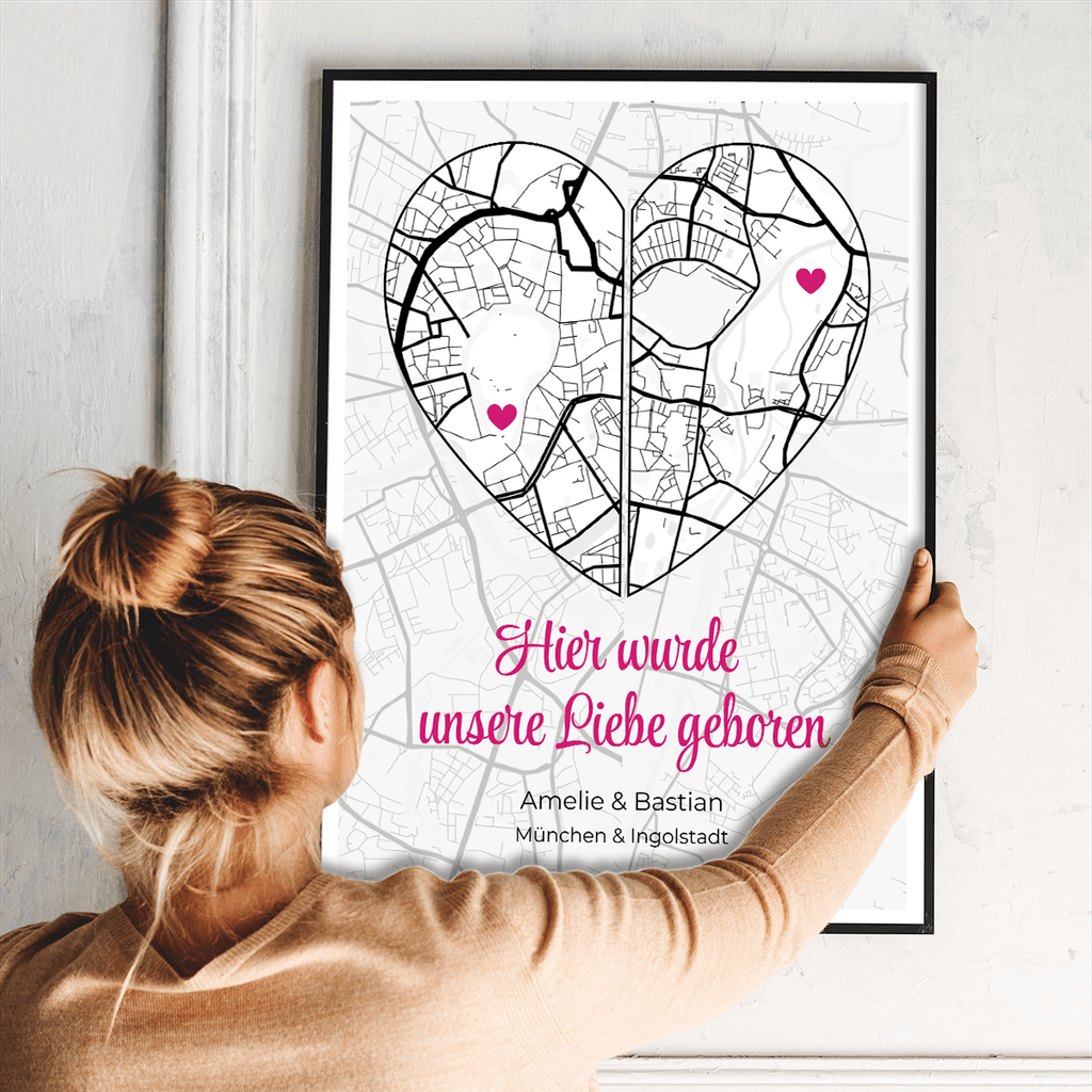 Unsere Liebe Karte - Poster, personalisiertes Geschenk für Paar