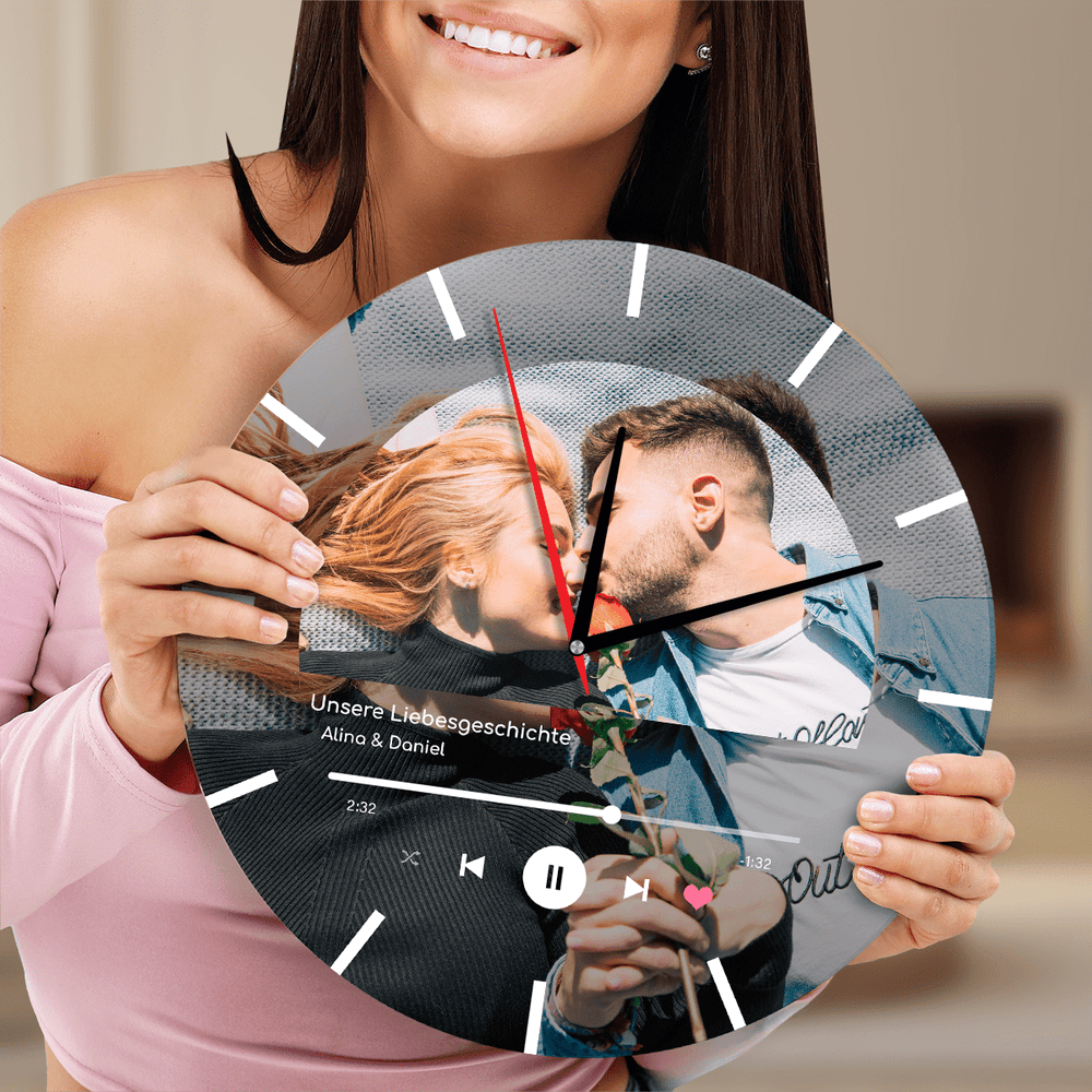 Eine Wanduhr mit personalisiertem Zifferblatt ist nicht nur ein Zeitmesser, sondern auch ein besonderes Andenken, das die schönsten Erinnerungen lebendig werden lässt. Wenn Sie die Uhr im Wohnzimmer oder Schlafzimmer aufhängen, erhalten Sie eine originelle und funktionale Dekoration. Jeder Blick auf das Zifferblatt verleiht dem Alltag zudem einen Hauch von Charme.