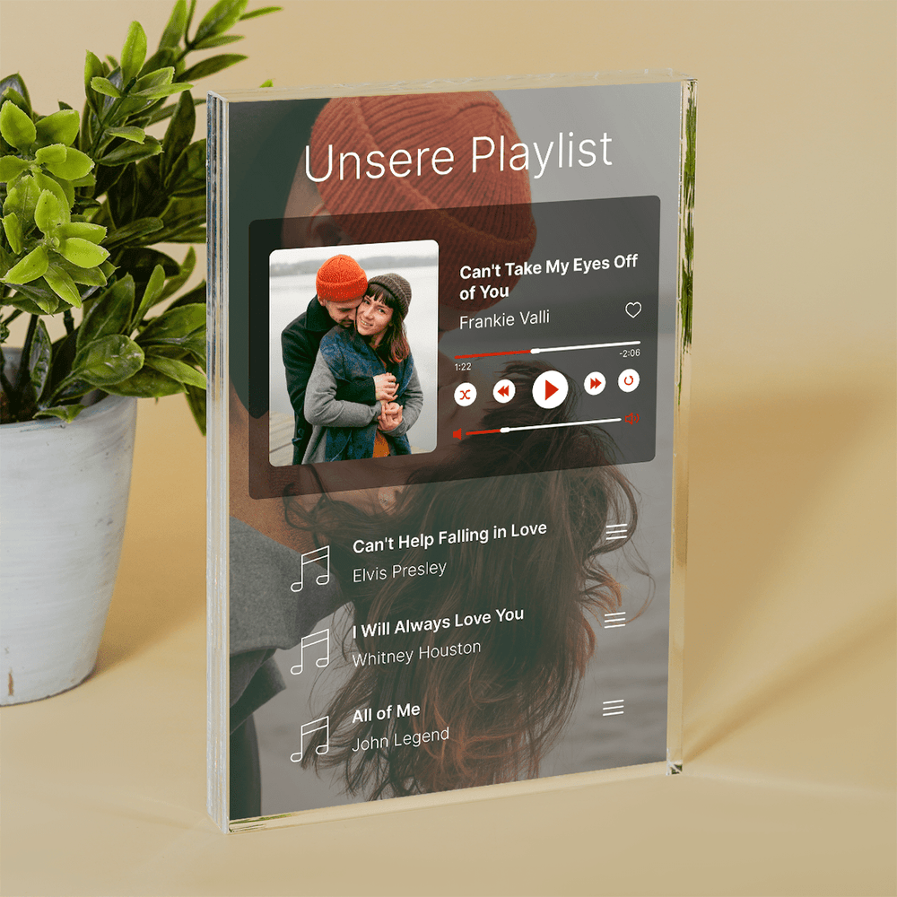 Unsere Playliste - Druck auf Glas, personalisiertes Geschenk für Paar