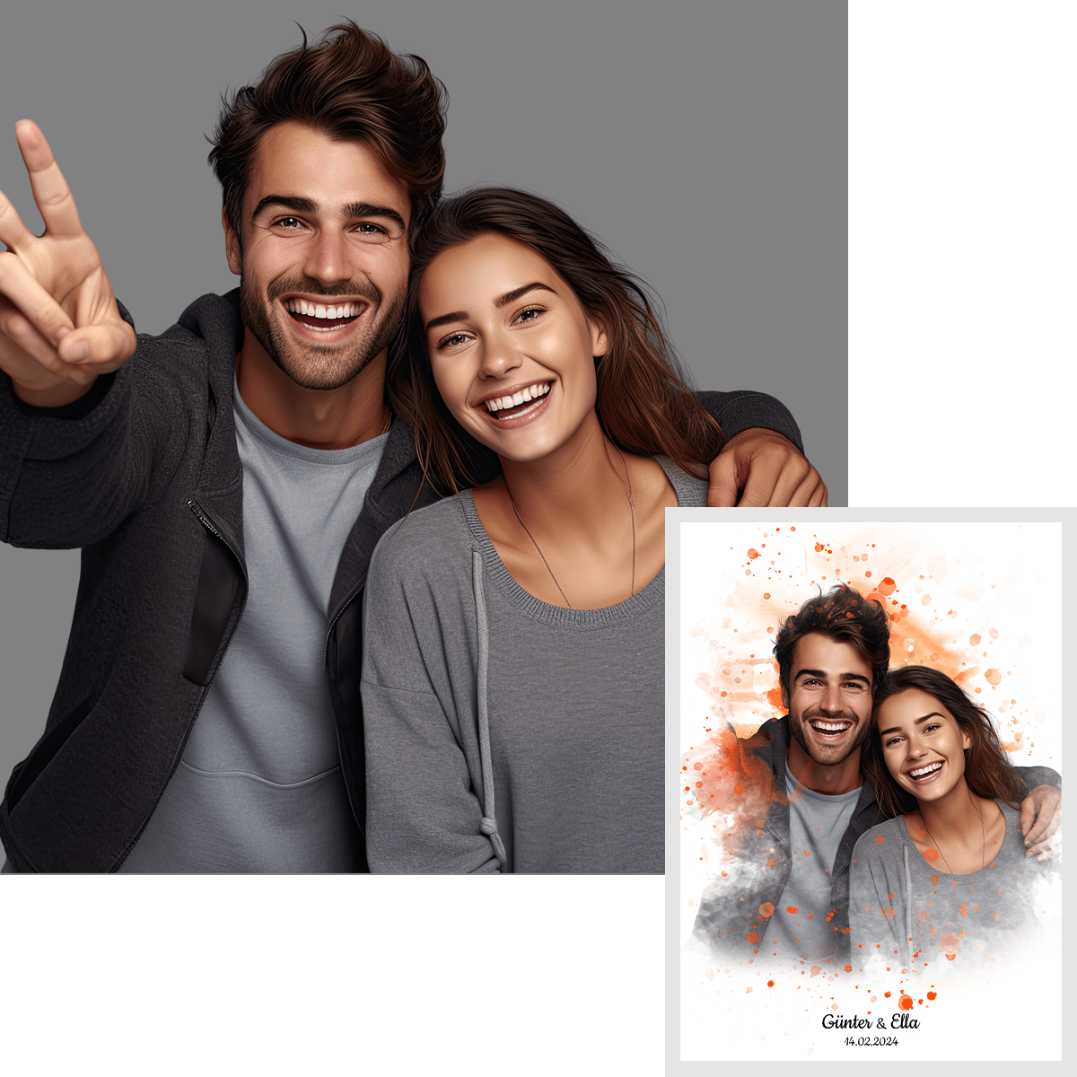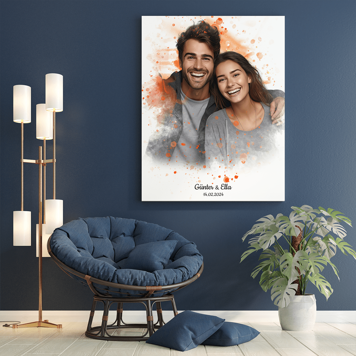 Verliebtes Paar Aquarelle - Druck auf Leinwand, personalisiertes Geschenk für Paar