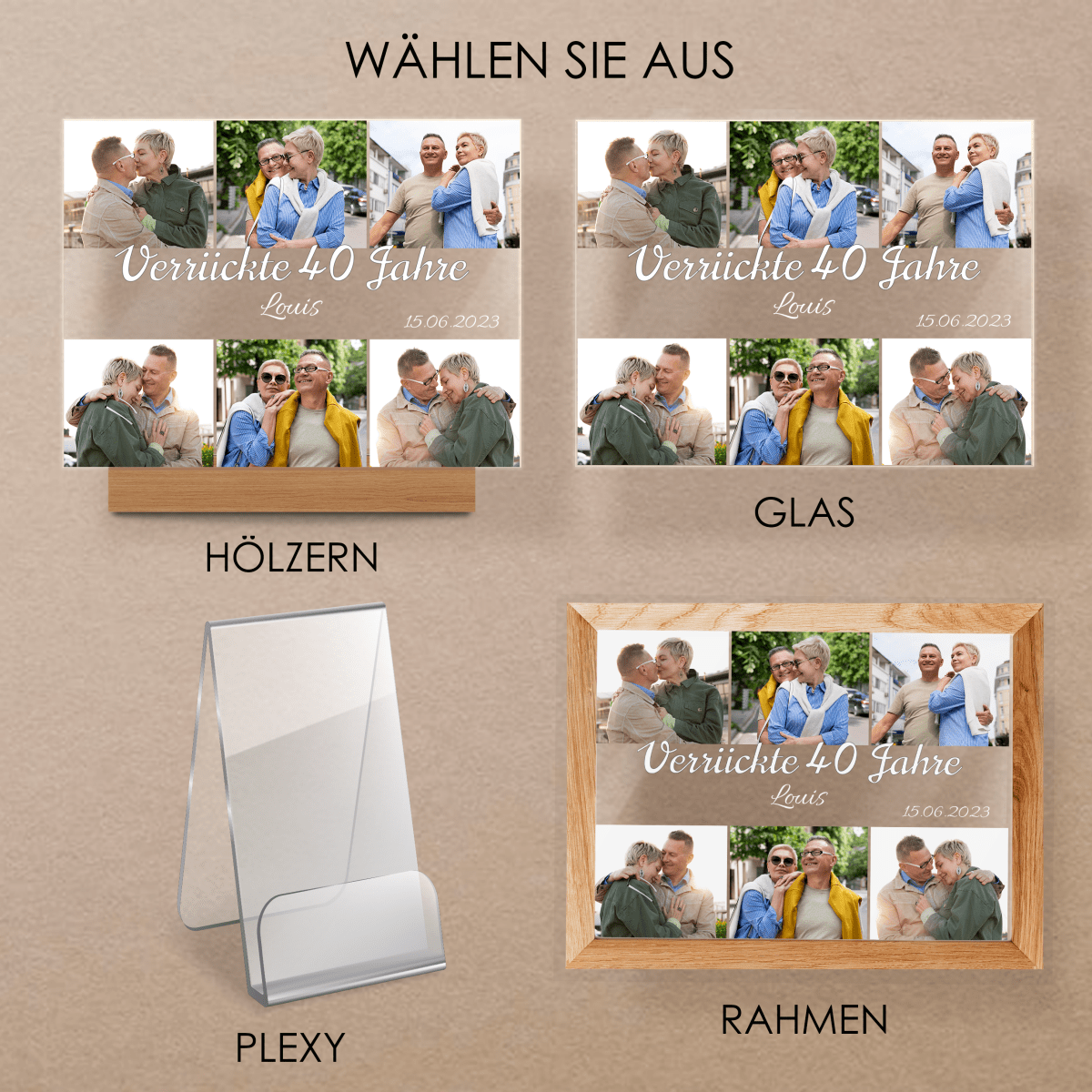 Verrückte 40 Jahre - Druck auf Glas, personalisiertes Geschenk für Ehemann