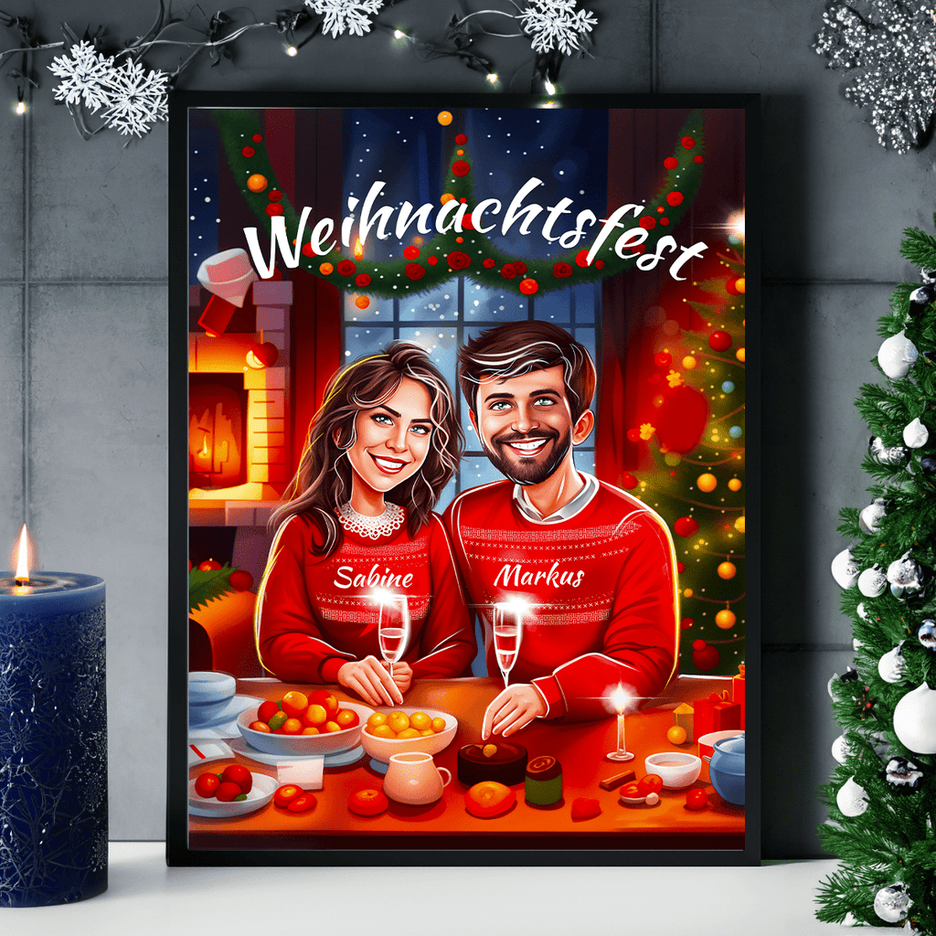 Weihnachten Illustration - Poster, personalisiertes Geschenk für Paare