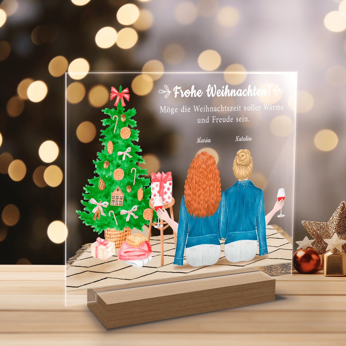 Weihnachtsgrafik für Schwestern - Druck auf Glas, personalisiertes Geschenk für Schwester