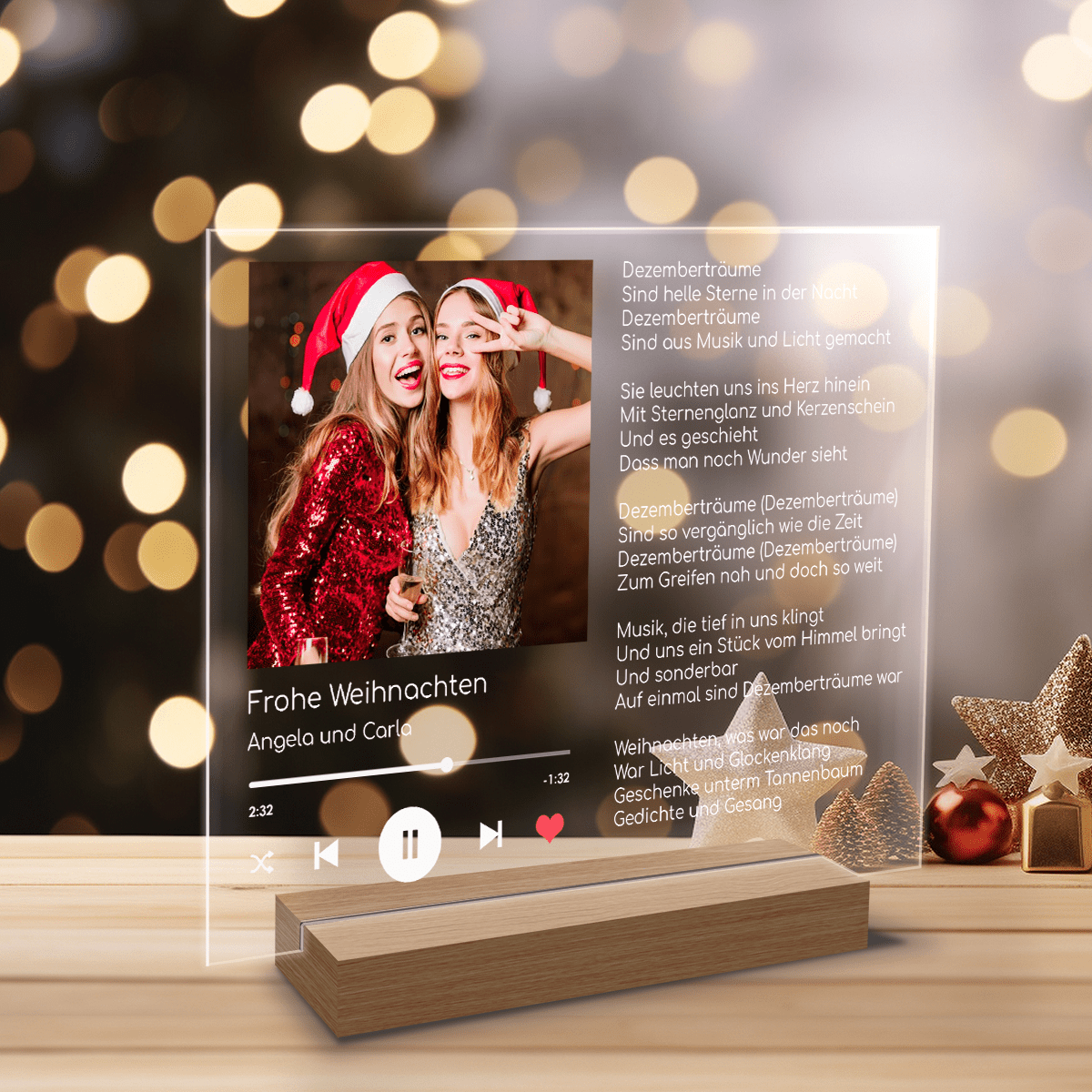 Weihnachtslied Schwestern - Druck auf Glas, personalisiertes Geschenk für Schwester