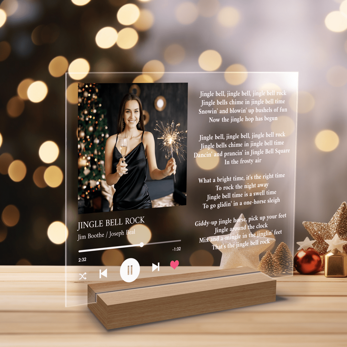 Weihnachtsliedtext + Foto - Druck auf Glas, personalisiertes Geschenk für Frau