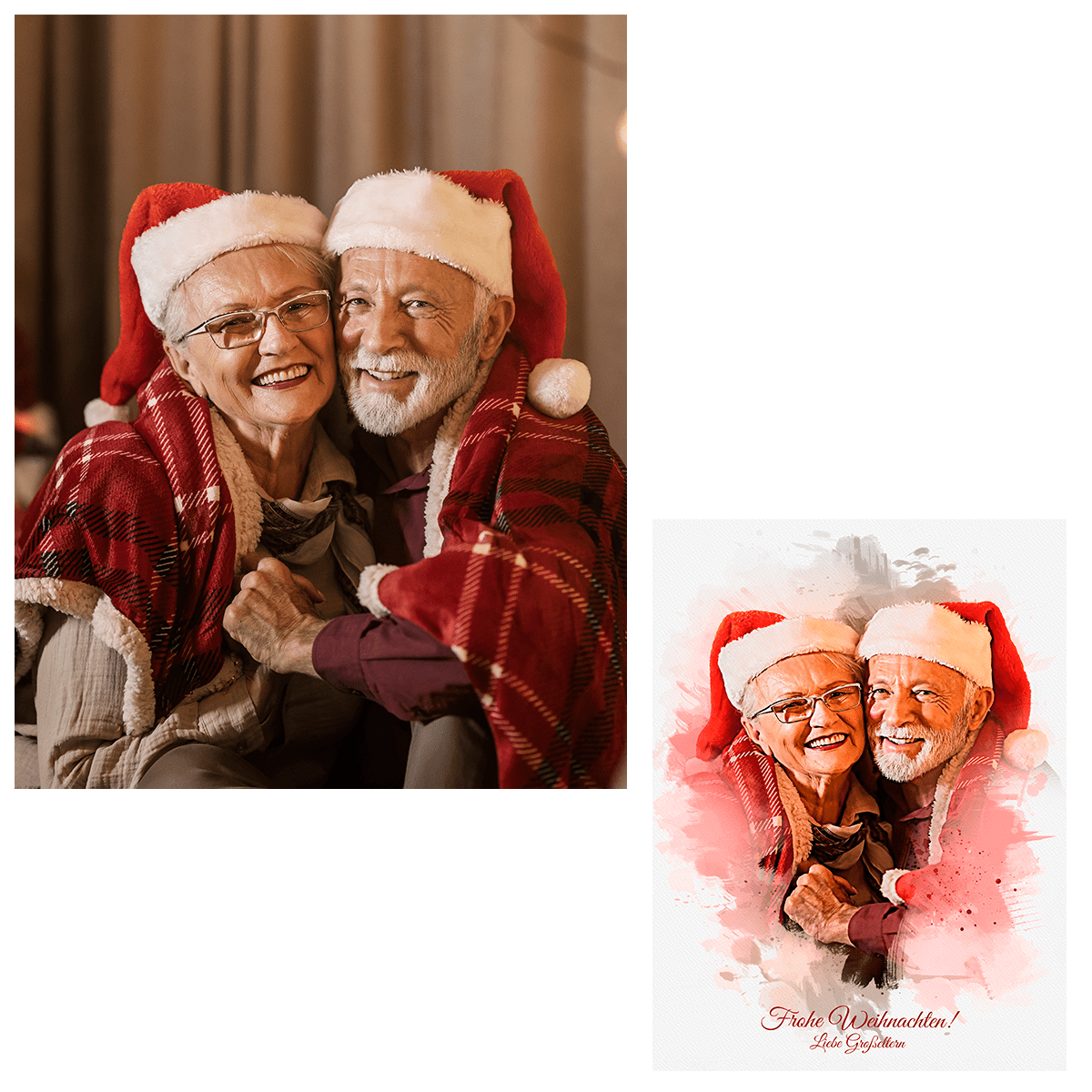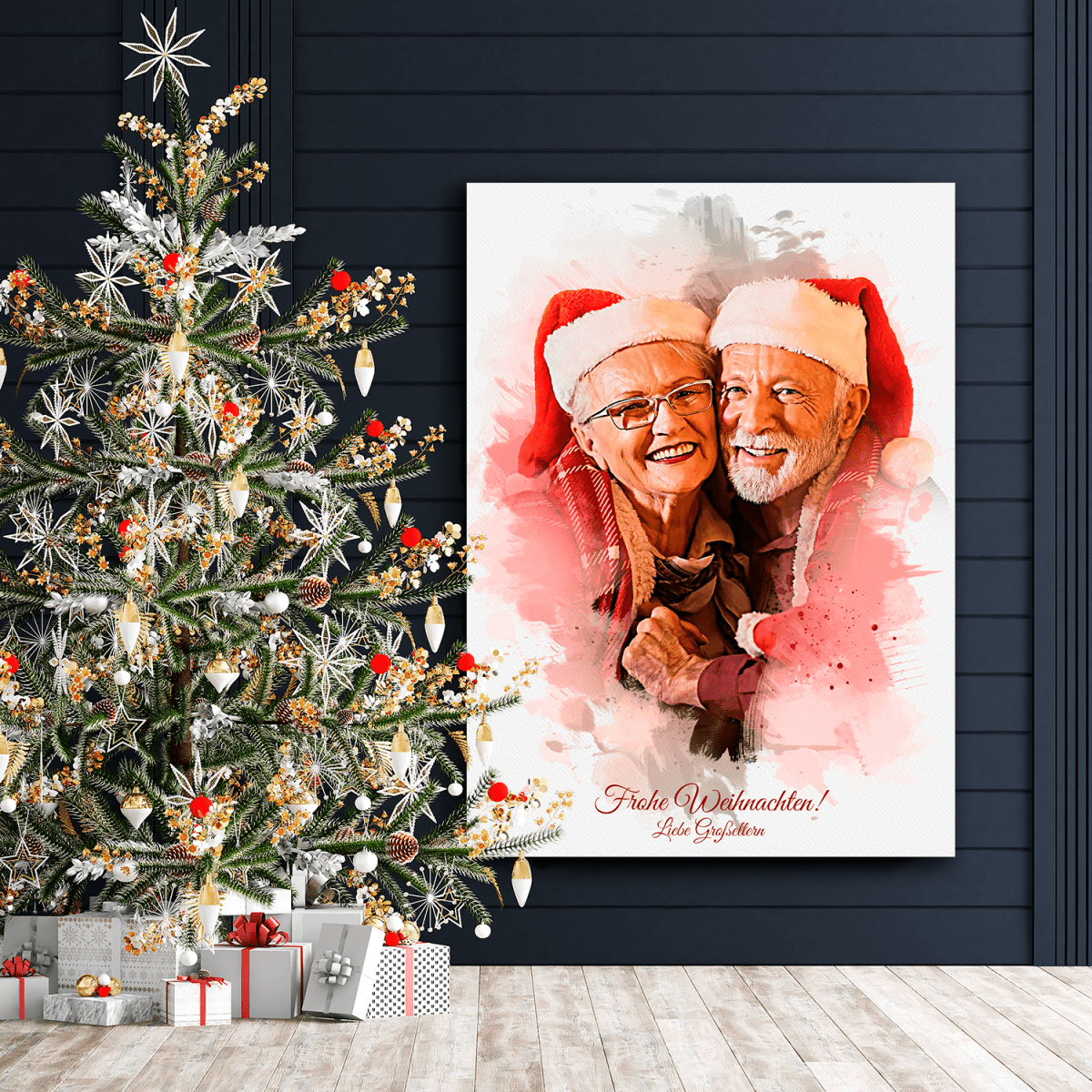Weihnachtsporträt der Großeltern - Druck auf Leinwand, personalisiertes Geschenk für Großeltern