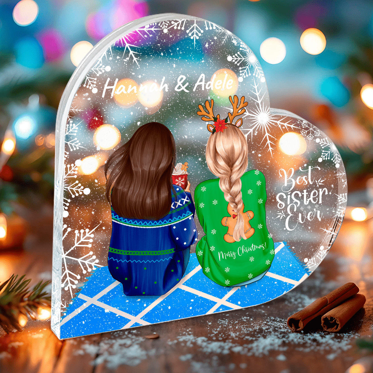 Weihnachtsschwestern - Druck auf Glas, personalisiertes Geschenk für Schwester