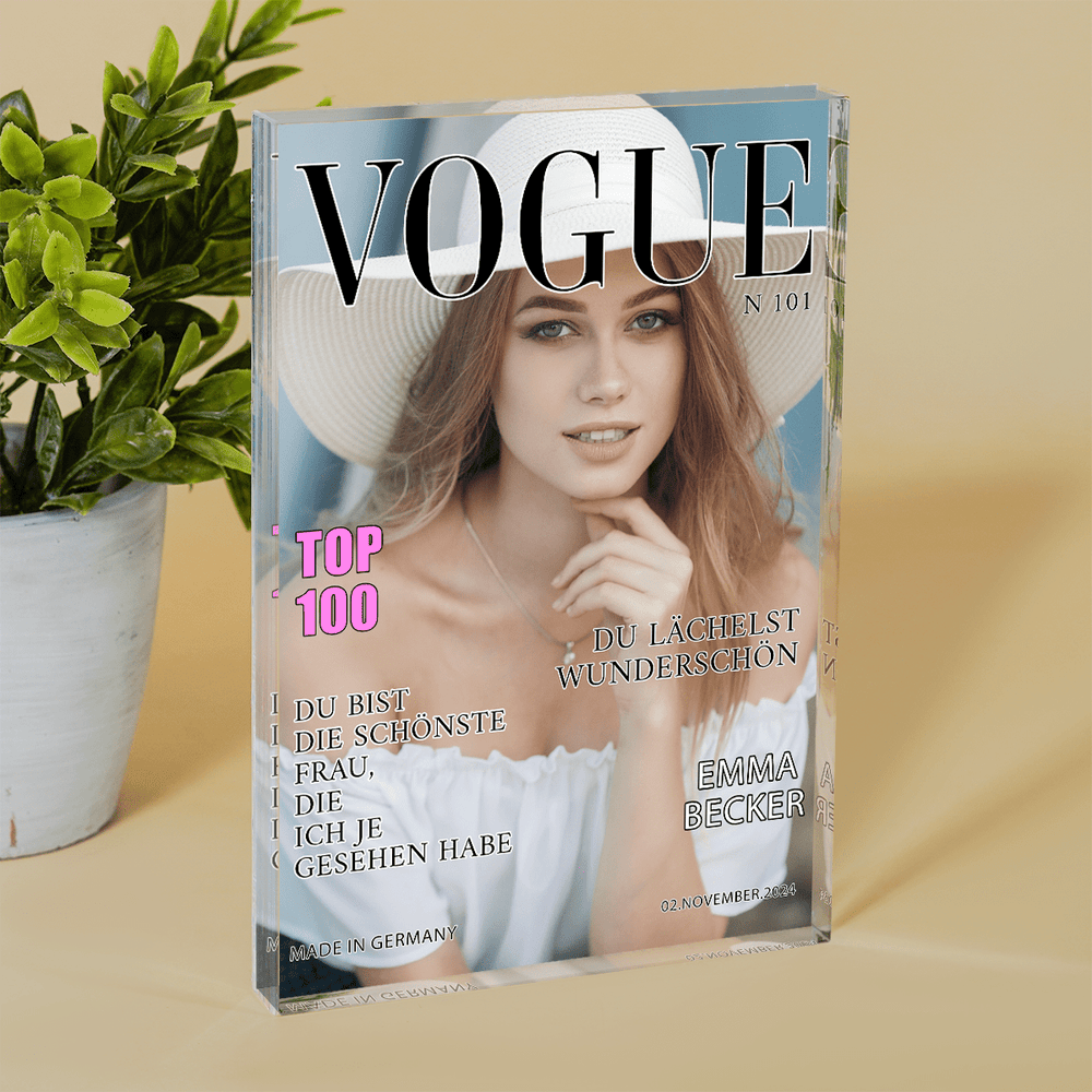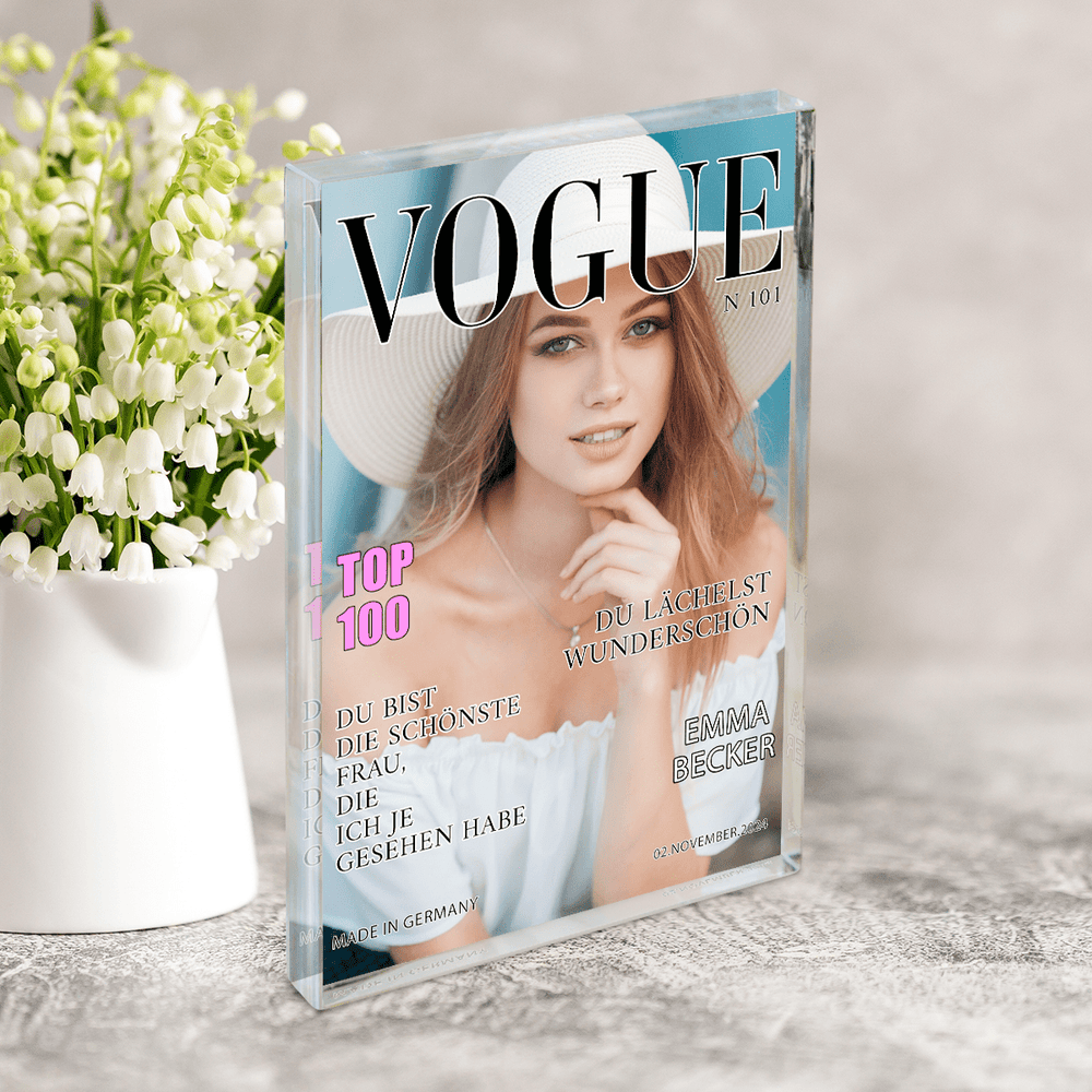 Wie auf dem Umschlag - Druck auf Glas, personalisiertes Geschenk für Frau