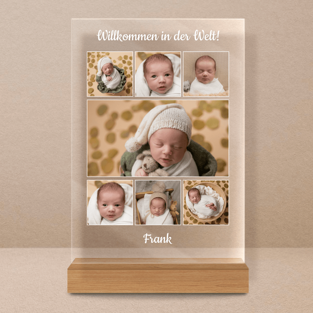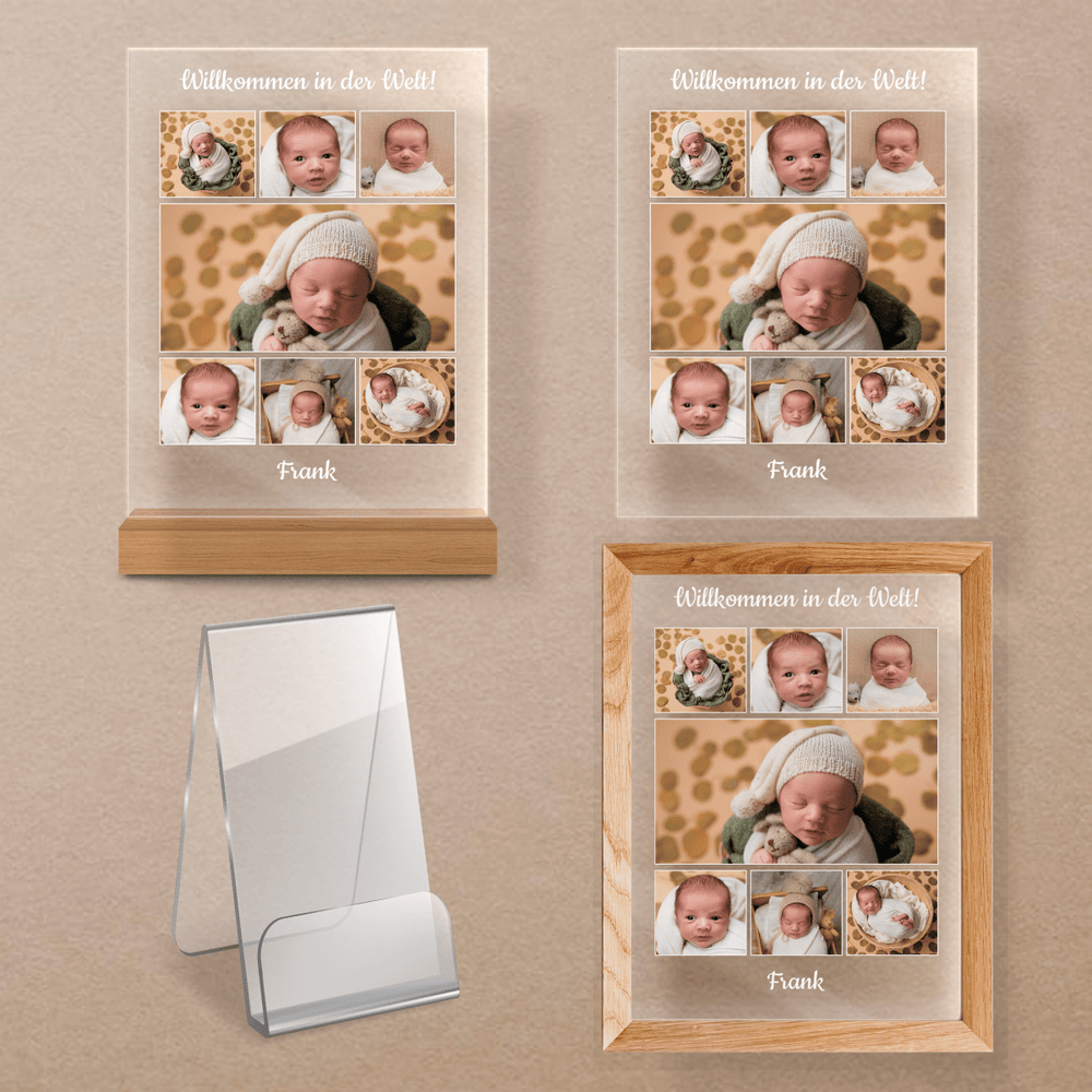 Willkommen in der Welt - Druck auf Glas, personalisiertes Geschenk für Kind