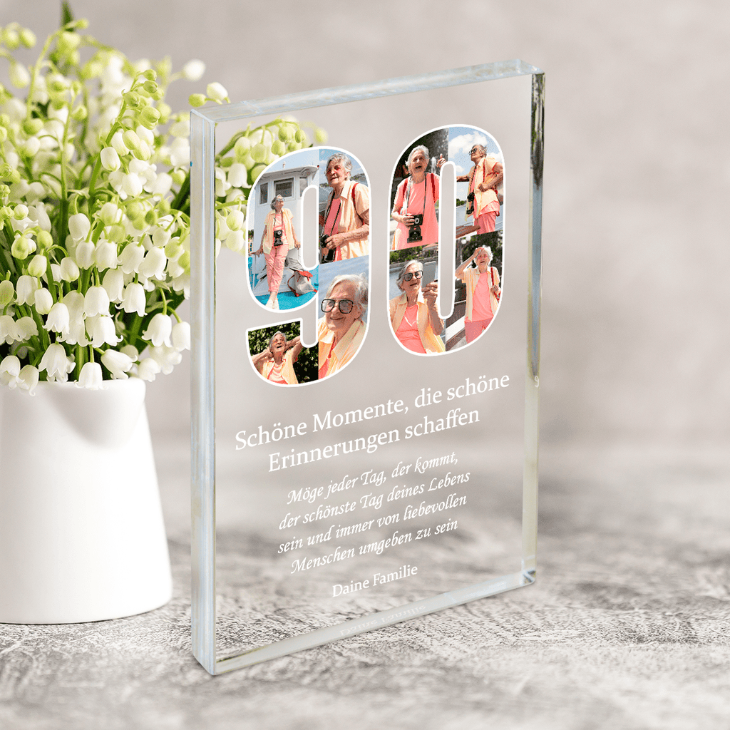 Druck auf Glas, personalisiertes Geschenk für Oma, Opa, Tante, Geschenk zum 90. Geburtstag, Geschenkidee, originelles Geschenk, Geburtstagsgeschenk