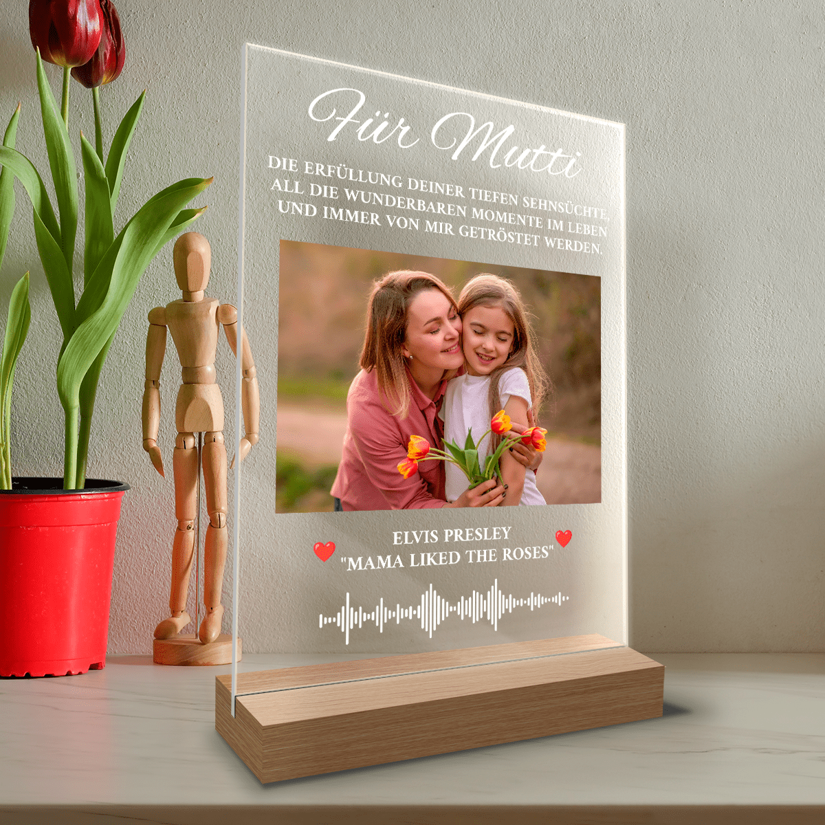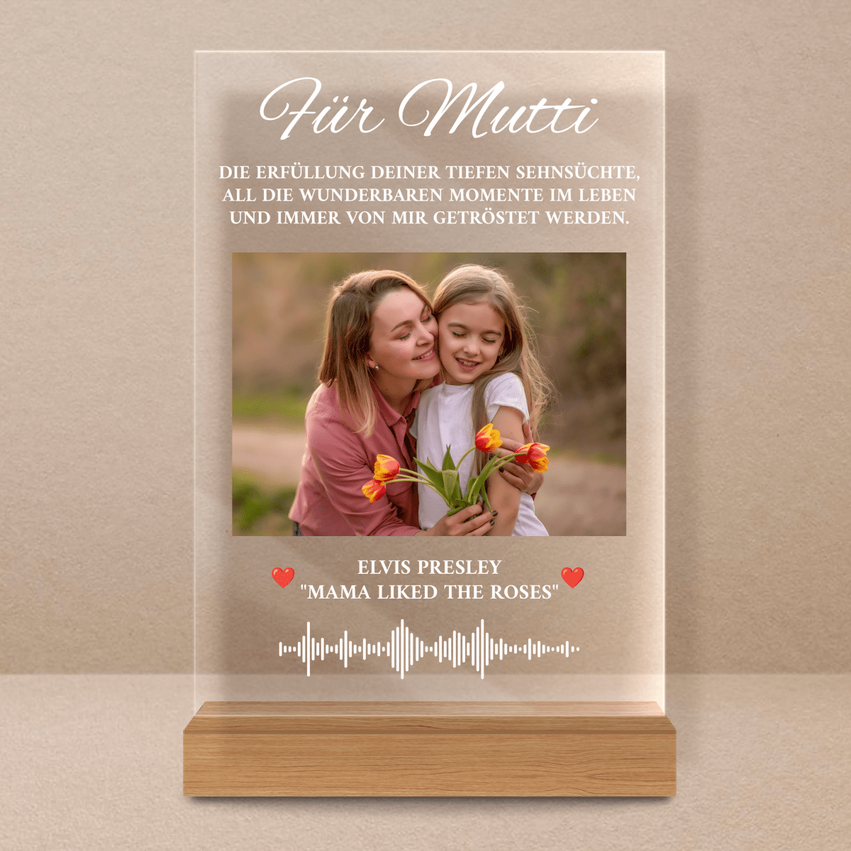Wünsche + Musikstück - Druck auf Glas, personalisiertes Geschenk für Mutter