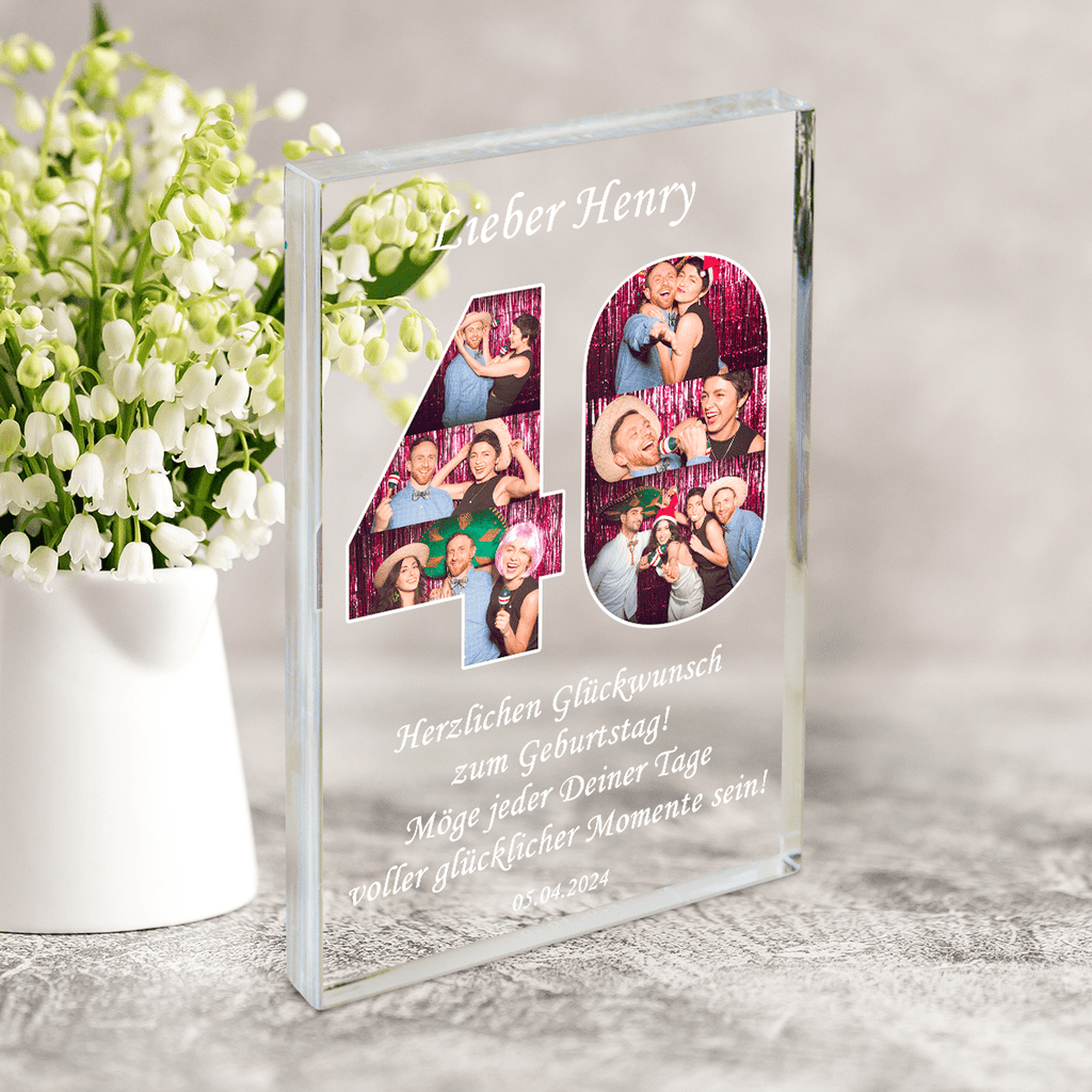 Wünsche zum 40 Geburtstag - Druck auf Glas, personalisiertes Geschenk zum 40. Geburtstag