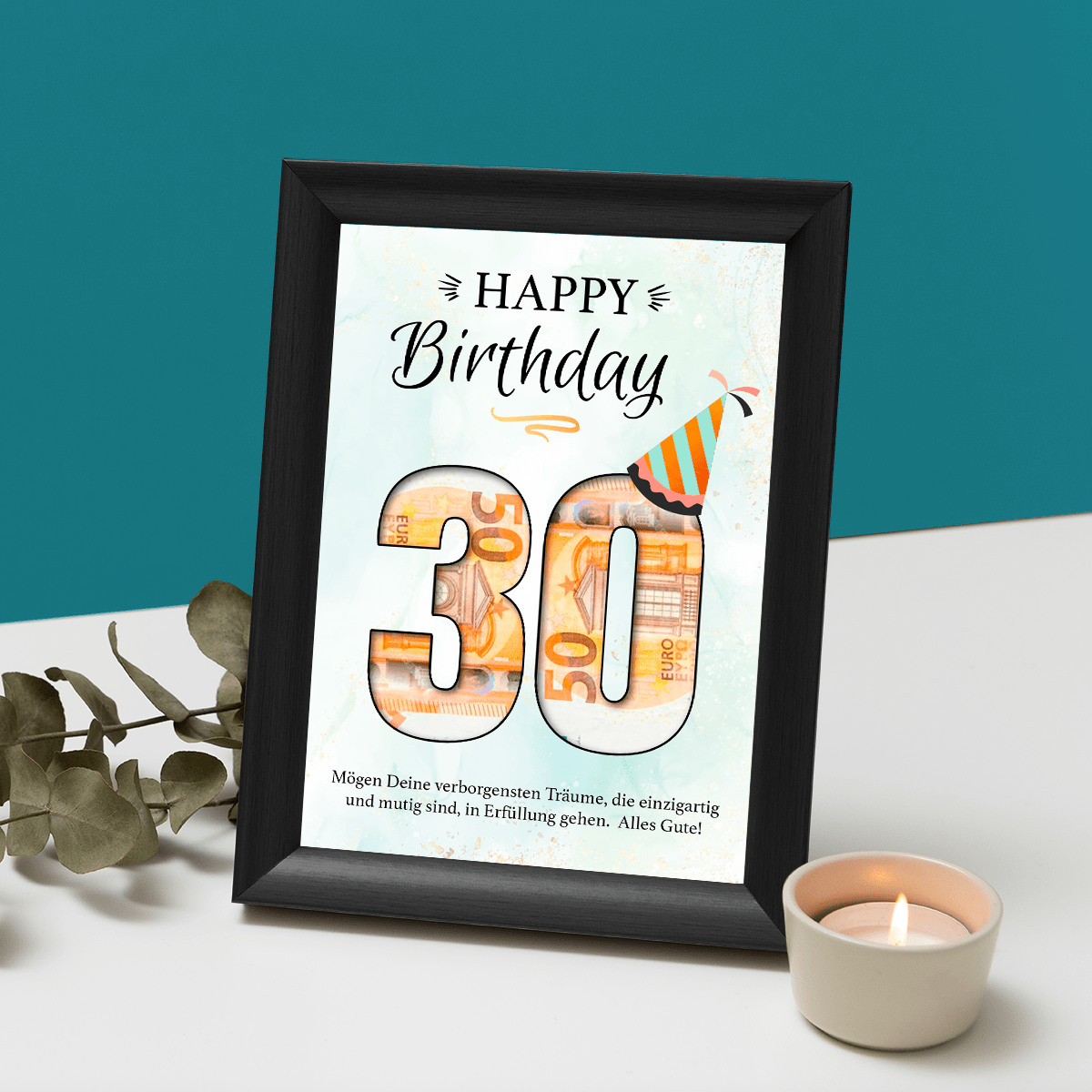 Zum 30. Geburtstag - Geldrahmen, personalisiertes Geschenk zum Geburtstag
