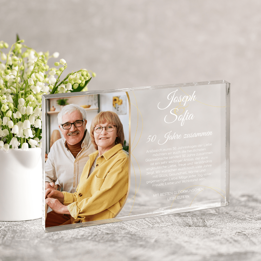 Druck auf Glas, personalisiertes Geschenk für Paar, Ehe, Eltern, Geschenk zum 50. Hochzeitstag, Goldene Hochzeit, Geschenkidee, originelles Geschenk